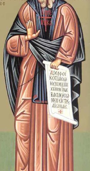 [1] Εἰς τὰ δύο πρῶτα τροπάρια ἑκάστης ᾠδῆς λέγομεν: ῞Οσιε τοῦ Θεοῦ, πρέσβευε ὑπὲρ ἡμῶν, εἰς δὲ τὰ δύο τελευταῖα: Δόξα Πατρὶ…, Καὶ νῦν… .